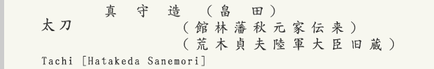 (附)荒木貞夫陸軍大将鞘書 上野国館林藩秋元家伝来・荒木貞夫陸軍大将旧蔵 秋元子爵家売立目録・藤代刀工辞典 所載 |