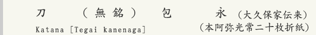 天和元年本阿弥光常代金子二十枚折紙・本阿弥琳雅留帳写 白鞘 田野辺探山先生鞘書 金着二重肥後鎺 |